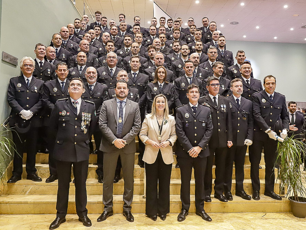 La felicitación y reconocimiento se extendió a toda la plantilla de la Policía Local, y de manera especial a las personas distinguidas por las acciones destacadas realizadas en el último año: